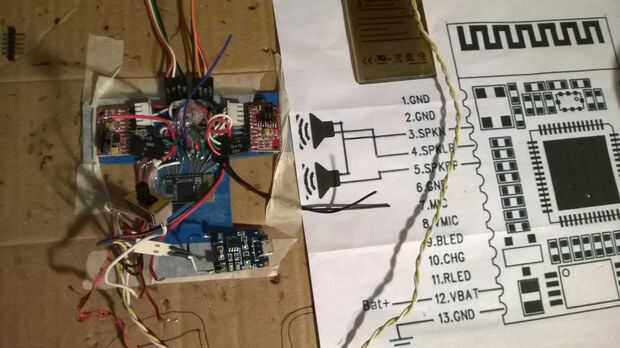 Hice muchos problemas, como las conexiones de bluetooth y que mantuvo para soldar el alambre vbat al plomo de la misma y mantenido falta el cordón de soldadura dejó, tomó un vistazo, vi una hace el palillo de la soldadura; ahora funciona el bluetooth