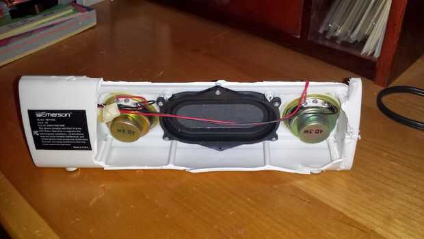 La unidad blutetooth tenía los altavoces, una pequeña batería recargable sin marcar y un micrófono de teléfono de altavoz pequeño que se le atribuye. Corte los cables sueltos de todos pero el mic (si desea mantenerlo), los altavoces y batería se sustituirá por su opción más adelante. Usé el Logitech que en la foto, me ha gustado los conos y los imanes de doble pesados de estas unidades. Me alegré de encontrarlos, he recibido seis por $7,50 en la tienda de segunda mano, encontré el manual para estos altavoces en línea y fue capaz de conseguir los puntos para ellos.