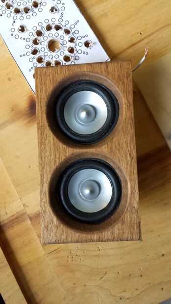 Mi siguiente paso fue para asegurarse de que la unidad podría potencia mis altavoces nuevos, como la potencia era un poco mayor 7.4W vs los 3W (alegres los ohmios eran iguales), me torcí los cables juntos, que todos trabajaban. Deje su unidad un poco así que usted puede probar para el sobrecalentamiento de la unidad. Mina no parece llegar muy caliente, así que me sentí bien sobre cercando en una caja hermética.