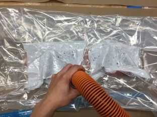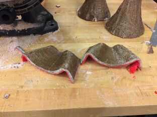 Yo Johnson Wax, tela de liberación y Mann liberación tecnologías facilidad liberación (sí, todos ellos, podría ser sobre la muerte) entre mi 3D imprimir molde y la capa de materiales compuestos (arpillera y resina de Epoxy por las resinas de entropía). Los agujeros en la tela de la liberación ayuda a la purga / blanco material de esponja para absorber la resina extra. I difundir las resinas claras de entropía (2 parte A y 1 parte B) en cada arpillera y apilarlos capa por capa. Son extremadamente líquidas. Luego lo aspira con un plástico vacíos, diseñado para almacenar ropa. Fue bastante fácil romper el molde aparte, y sacar el molde impreso 3D. Luego recortar y lijar las piezas a la medida. Todas las de lijado y corte deja la superficie blanca y áspera, para que había revestido con otra capa fina de resina, utilizando como pintura. Tuve que esperar aproximadamente 12 horas antes de que yo puedo hacer cualquier cosa con él.