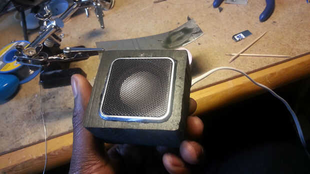 Consejo: Una carcasa alternativa para los altavoces sería utilizar la carcasa original y cortar por la mitad. De esa manera los altavoces encajaría perfectamente. Sin embargo guardé mi caso original para otro proyecto que pronto voy a publicar aquí.