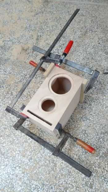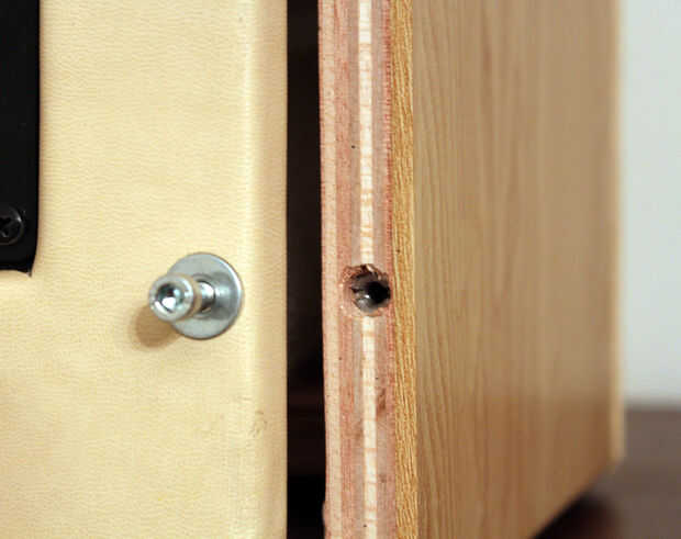 Si desea que el panel posterior para ser removible como lo hice, puede utilizar tornillos de madera o mejor aún tuercas remachables. Coloque y atornille los controladores a los paneles frontales. Conecte el plus y menos terminales a los crossovers y pegamento el panel frontal para la caja. Agregar el pegamento que se une a todos dentro de los recintos para sellarlas y pegar la parte frontal de la caja.