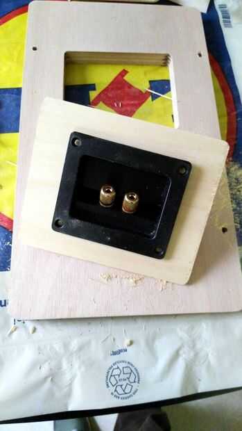 Marcar y abrir un agujero donde la placa terminal de altavoz está a punto de ajuste usando una sierra de calar.