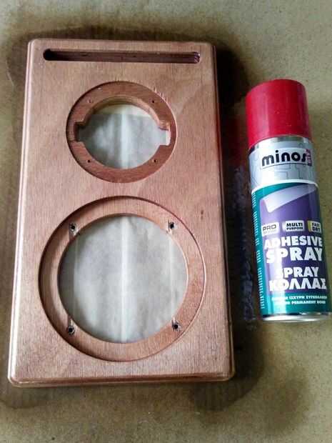 Rocíe una capa más en vinyl e inmediatamente lo conecte al panel.