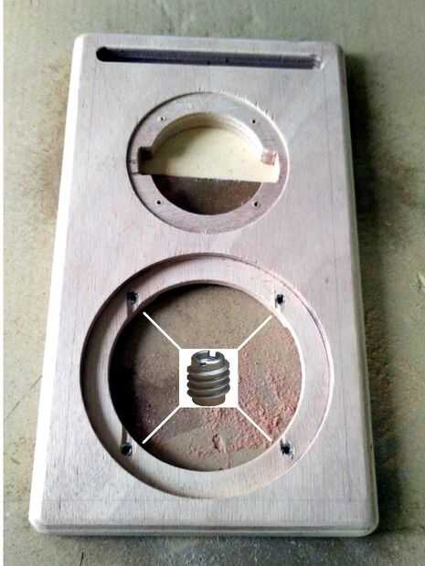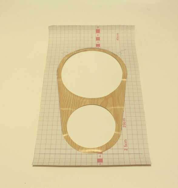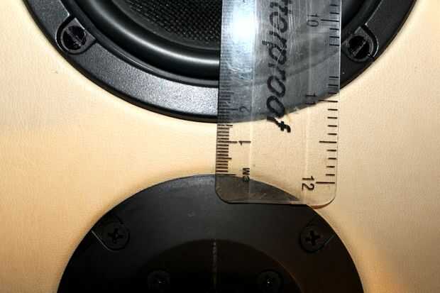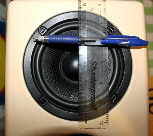 Medir el diámetro exacto y la distancia entre los conductores con una regla, voltee la hoja del PVC y marcar las distancias. Hacer uso de un compás de dibujo para dibujar el diámetro de los discos. Ahora dibuja un círculo otros 1cm más grande que el diámetro de conductores y a las partes horizontales exteriores de los círculos de woofer y tweeter. Ahora, primero se corta a mitad de camino los círculos exteriores hasta los puntos de Unión mediante brújula giratoria cuchillo para obtener mejores resultados. Cortar las líneas de unión con un cuchillo. Utilizar la brújula navaja para cortar los círculos interiores y aplique cuidadosamente el PVC al panel frontal. Hecho!