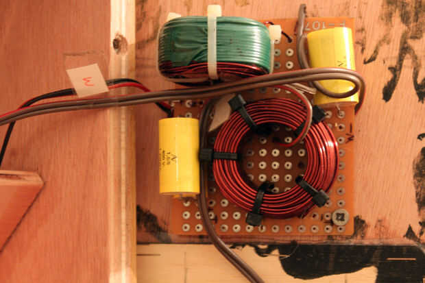 Coloque los crossovers en los paneles frente a los woofers donde hay más espacio.