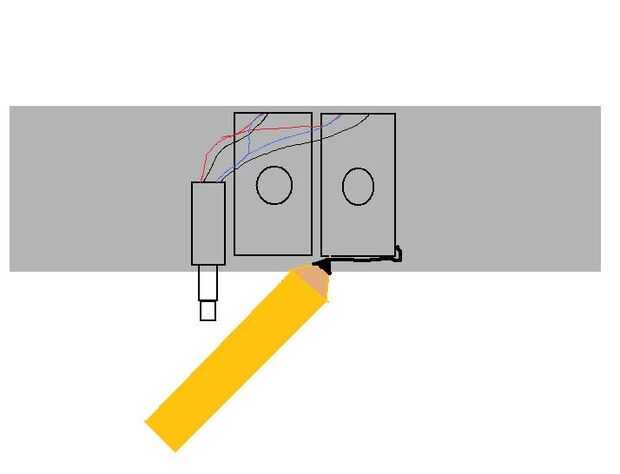 Corte una tira de aluminio un poco más ancho que los altavoces son altos y cerca de tres veces tan ancha como dos altavoces y el conector combinado. Trace una línea alrededor de la Asamblea, para que pueda saber dónde perforar los agujeros.