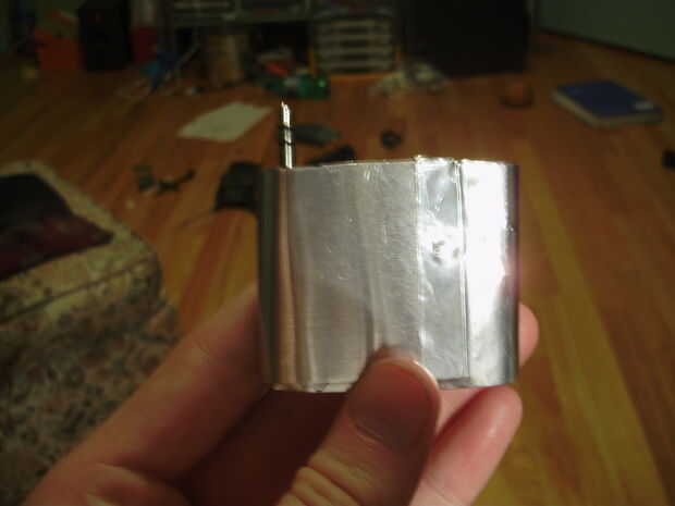 Doblar el aluminio alrededor de los altavoces, por lo que están completamente encerrados. En la parte posterior, donde se superpone el metal, cortar un pequeño trozo de cinta de aluminio y cinta adhesiva los dos juntos. Si lo desea, puede cortar un pedazo de aluminio de la misma forma que la parte inferior y pegamento, por lo que los altavoces no se muestran.