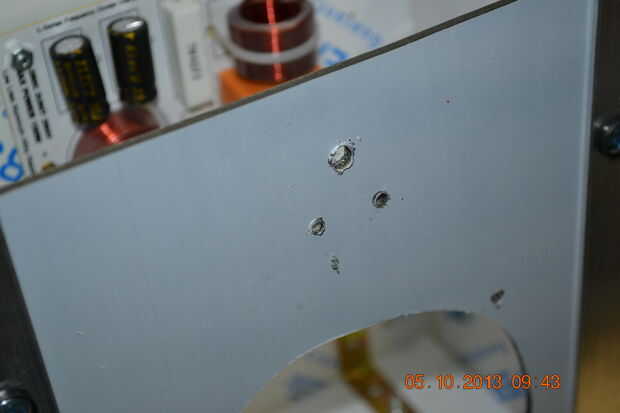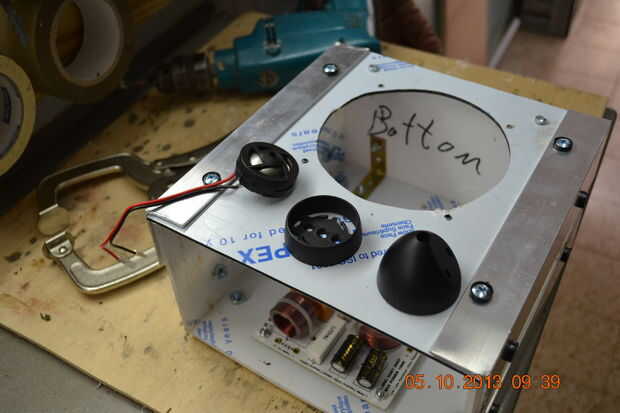 Taladrar dos orificios para el tweeter encima del Woofer.