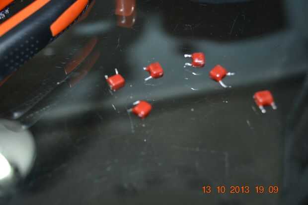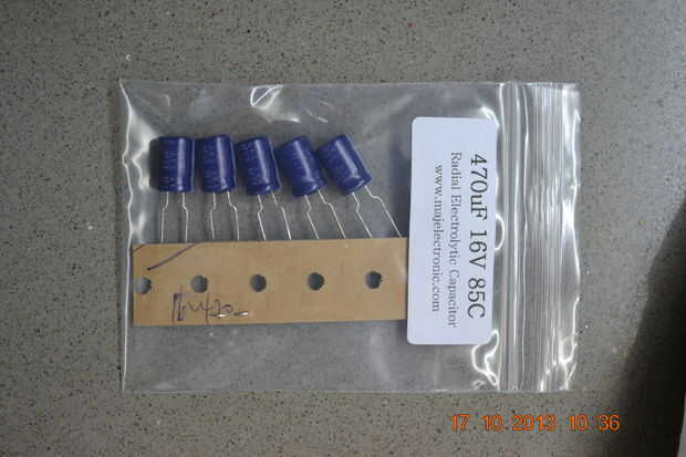 Debajo puede ver los antiguos condensadores de salida (rojo) - valor es: