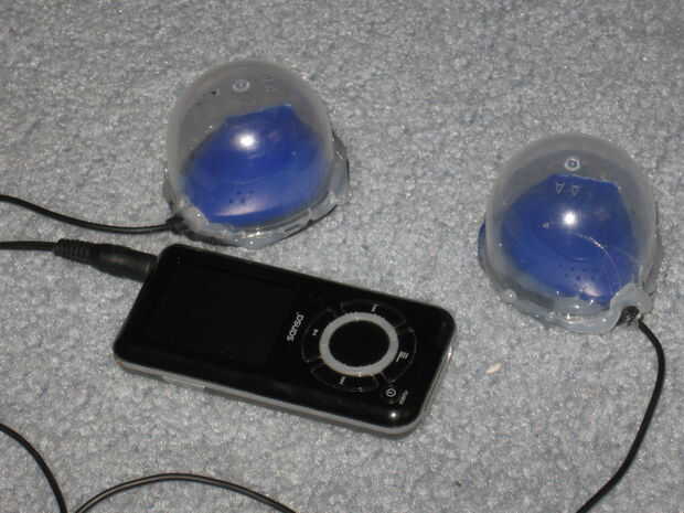 estos altavoces son un combo de esos altavoces de foldup swapmeet que venden para ipods y algunas rescatado de una vieja computadora mac. soporte de la batería es de la primera versión de mis luces de bicicleta y los cables fueron comprados en el sh