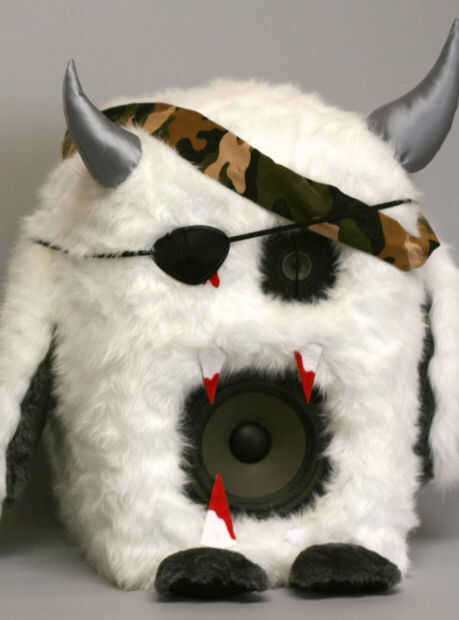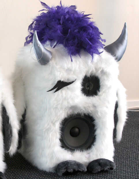 Los accesorios fueron hechos con arte fieltro (humedecido en pegamento y les seca por lo que sería rígidos) y celebrada con estratégicamente velcro blanca (cosido a los altavoces con - usted lo adivinó - aguja curvada!)