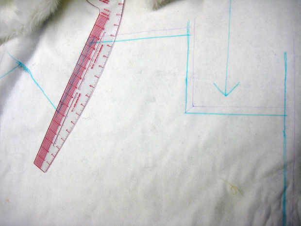 Marca un margen de costura fuera de estas líneas sin embargo amplia parece mejor para sus habilidades de costura. Minas están marcados en 1/2", pero yo estoy loco experto en esta materia. Probablemente necesitarás más.