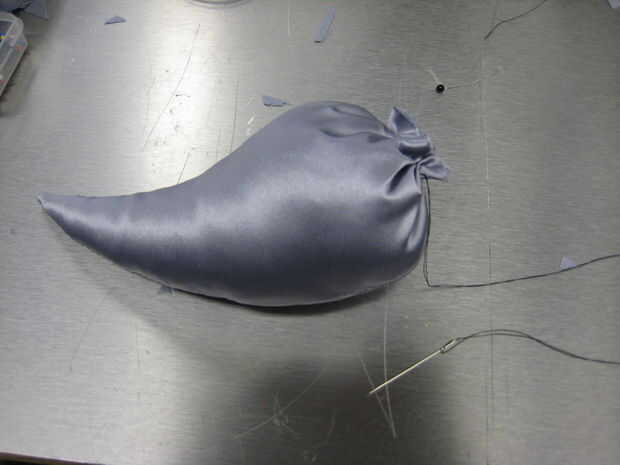 Después de rellenar con guata, coser los extremos juntos firmemente.
