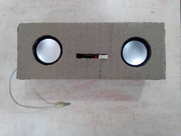 • Tomar al altavoz puré papel frente y caja de cartón rectangular.