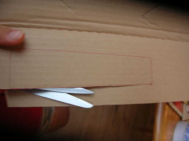 Sacar la forma de la parte delantera y en couragated de cartón para que tenga 4 aberturas separadas. El enlace debe estar en esta página en un documento de word Luego con los trozos más delgados de tarjeta cortar 4 tiras de 8cm por 34 cm.