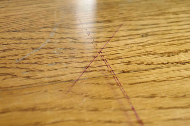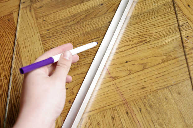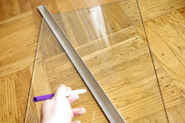 La forma más sencilla de hacerlo es dibujar una "X" de esquina a esquina con un marcador permanente. Donde se unen las dos líneas será el centro del panel.