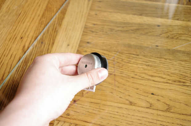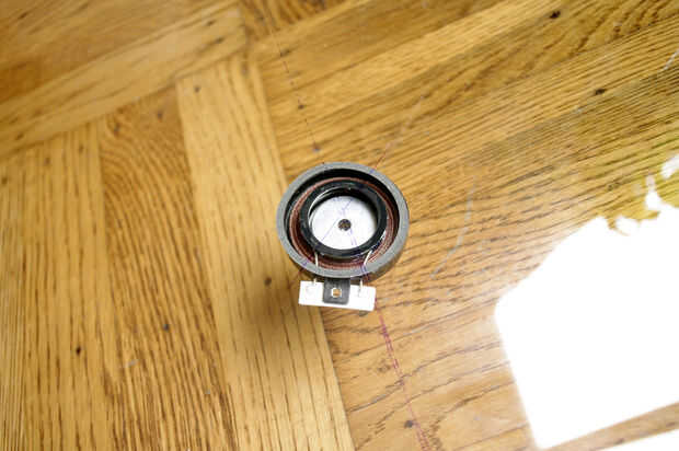 El adhesivo que cubre desde el transductor y centro por el lado del vidrio sin las marcas de centro.