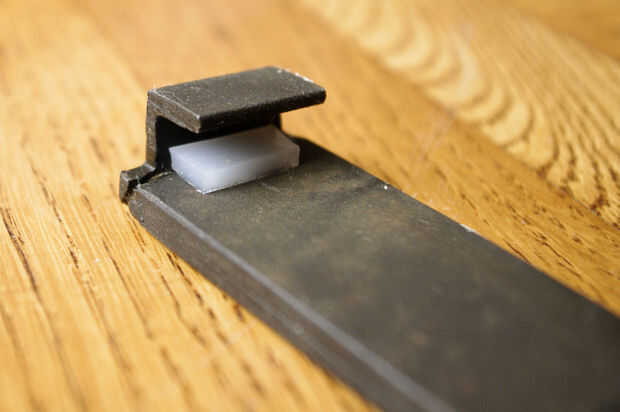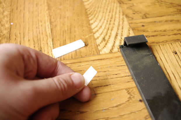 Corte cuadrados de silicona adhesiva pequeña y péguela en la parte delantera y trasera de los soportes en U en la barra de metal. Estos se sostenga el vaso firmemente en su lugar y evitar vibraciones.