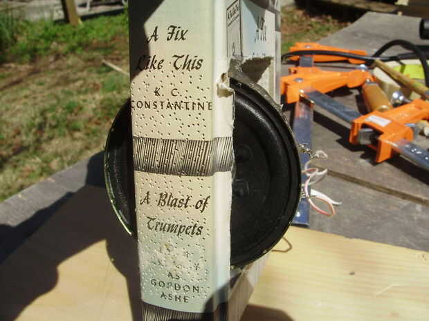 Le enseñará cómo hacer un libro de tapa dura y regular su propio altavoz.Se necesita:un libro pequeño, tapa duralarge, neodymium magnets (about 1/2 inch diameter http://www.amazon.com/3-Count-CMS-Magnetics%C2%AE-Neodymium-Permanent/dp/B000UCVARK/ref=