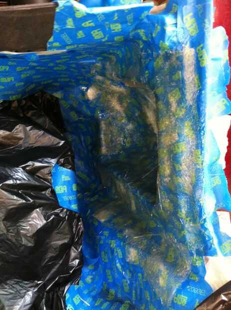Usted debe tener su pila de esteras de fibra de vidrio cortada y listo, ahora todo queda es la resina. Esto tendrá que ser mezclado a las instrucciones provistas con su resina o endurecedor. He puesto mío como ejemplo de aproximadamente cuánto necesita para cada capa, si su área es aproximadamente la misma que la mía. Debe ser capaz de después de la primera capa para calcular cuánto se necesita, para abrigos de futuro.
