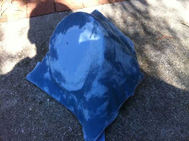 Pero primero vas a necesitar cubrir la lana con la resina. Cubra todo el paño grueso y suave pero el centro de su anillo de altavoz, ya que estará cortando más tarde. (se puede hacer si lo deseas, no importa) Usted quiere el lana para ir de un color más oscuro como el mío.