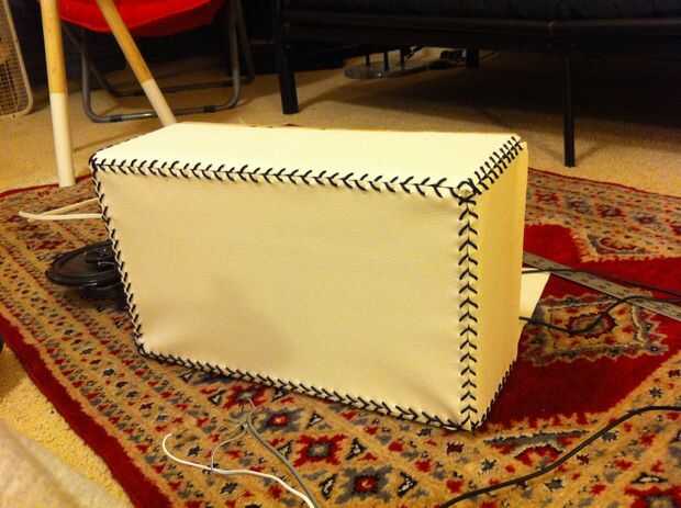 Después de la colocación y lijado el acabado posterior, coser el cuero y simplemente ir alrededor de los enchufes.