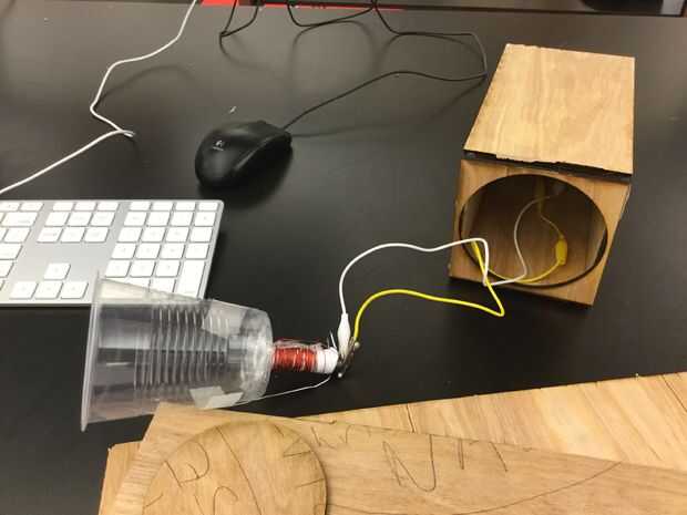 Saque papel laminado interno. Luego, cortar la parte inferior del papel sobre el imán en piezas y doblar. Luego, caliente pegue en el fondo de su vaso de plástico. Entonces, un círculo alrededor de la parte inferior de la Copa y cortar. Luego, ponga un pedazo de cinta en la parte inferior en lugar del círculo de plástico la parte pegajosa quede fuera. Entonces, vuelva a colocar la parte del imán en la Copa. A continuación, haz un clip de papel y hacerlo por lo que cabe en un mag\net. A continuación, pegue en la Copa. Luego, en el exceso de cable cobre, quemar el aislamiento usando un encendedor. Luego poner pinzas en ellos. Luego, corte anoxcord, necesita unir los clips de cocodrilo en los cables negros y amarillos del cable aux. Luego bplug en el teléfono y el bam funciona como un altavoz. Láser corte 4 piezas de 7 por 4 rectangeles. Luego cortar 2 5 figuras de 4 pulgadas. Uno de ellos con un círculo en el centro con un diámetro de 3.75 pulgadas. Pegamento caliente todo el láser cortar piezas de madera juntos. Perfore un agujero pequeño en la parte posterior. Poner la taza en el caseing y poner aunque diminuto agujero de gato. Conecte y disfrute! https://youtu.be/IlSwa8Bw164