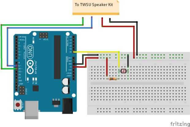 Use un cable puente verde de 'Pin 10' en el Arduino a 'SIG' (señal) en kit de bricolaje de altavoces