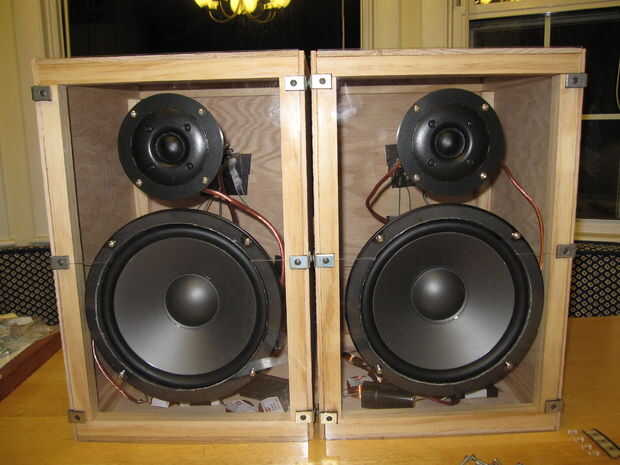 Ahora los altavoces casi listo! Simplemente use los pernos y las tuercas de fijación para montar los controladores en la hoja de acrílico y luego conecte los conductores a lo crossover.