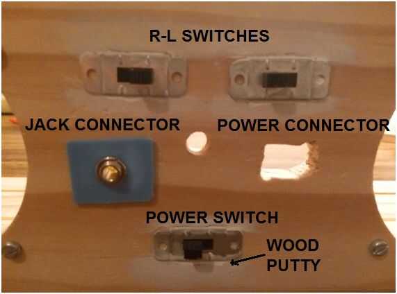 7. Debido a que el conector no tiene una forma cuadrada, utilizar un pedazo de plástico para cubrir el agujero. Orificio del conector de alimentación también tienen esta pieza de plástico. Para cubrir el agujero del interruptor se puede utilizar masilla de madera.