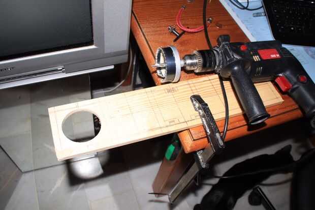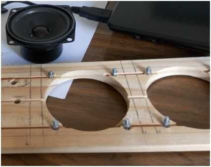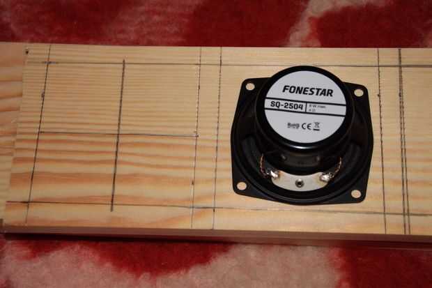 5. Hacer cuatro más agujeros para atar cada altavoz a la madera con tornillos.