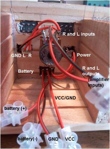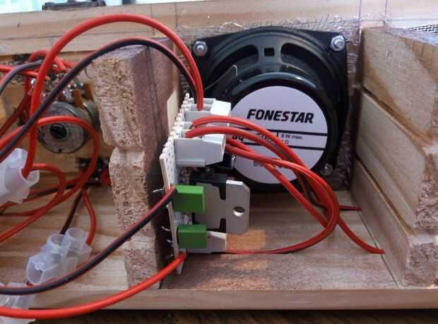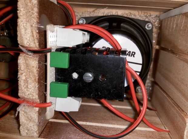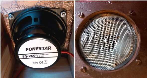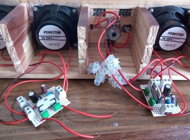 Soldar dos bastante largo los cables en cada altavoz y fije en la caja. Usted puede poner una malla metálica para proteger el altavoz.