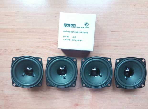 Hemos querido hacer un altavoces potentes y de buena calidad, por lo que hemos decidido hacer un sistema formado por cuatro altavoces de 4W y 4Ω.