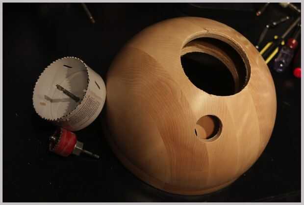 Paso principal: Cada uno de los agujeros de taladro. Puse el altavoz para bajas audiofrecuencias directamente en el centro de la ensalada y mi tweeter de una pulgada y media por debajo de la. Normalmente tweeters se colocan encima de woofers pero ya que estos altavoces fueron significados para colgar en los árboles sobre las cabezas de los asistentes coloqué más abajo.