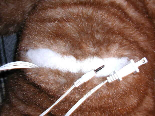 Ahora es el momento de coser encima del oso y dejar el enchufe de cable y el altavoz.