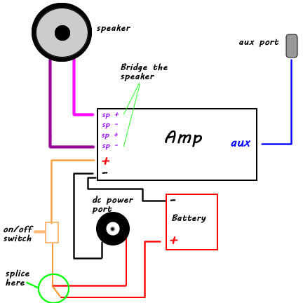 Más amperios que compre de partsexpress.com tendrá instrucciones sobre cómo cablearles. He añadido un diagrama para el aprendizaje visual por si acaso.