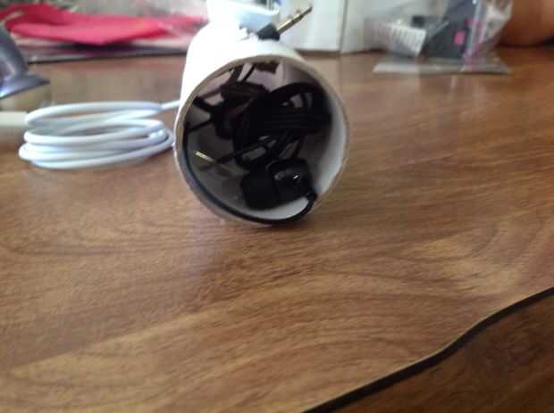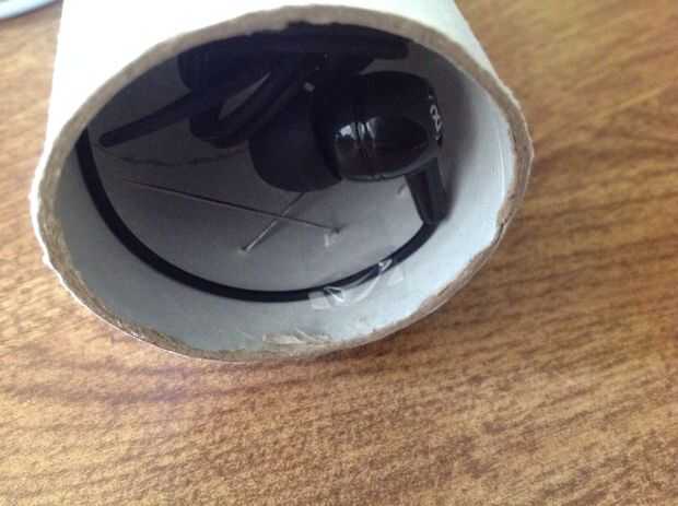 Con la corbata twisty, atar los auriculares como el pic. Poner el auricular del rodillo en la en la cosa de papel higiénico. Conecte los auriculares al iPod. Tape que el auricular se conecta a cada lado del rollo dependiendo de si se dejan o derecho. Cinta el enchufe izquierdo con el lado izquierdo del rodillo, la derecha con la derecha. Fácil. Asegúrese de que cuando usted cinta adhesiva, no dejes que los enchufes demasiado hacia el exterior. Quiere que suena bastante fuerte.