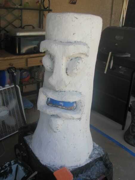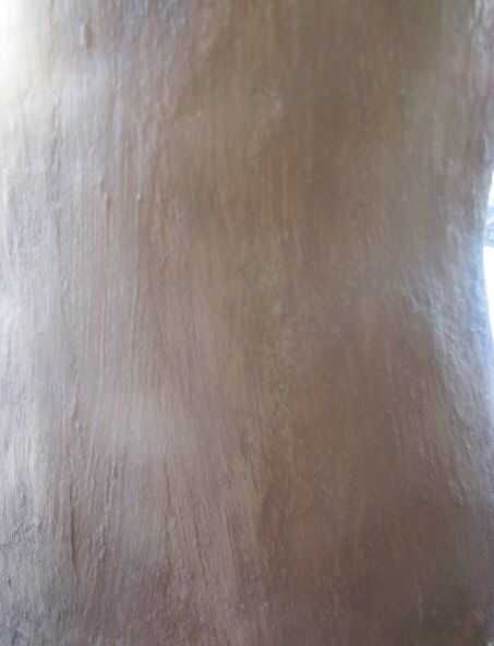1) la primera capa se va a crear la textura de madera. Utilicé una mezcla llamada Thoroseal, un sellador al agua para pintar diseñado para utilizar con hormigón. Además de impermeabilización de las cosas, también tiene una consistencia de pasta de dientes, perfecto para hacer el grano de madera falso. Todo lo que necesitas hacer es sobre el concreto con un pincel y su tiki tendrá grano de madera!