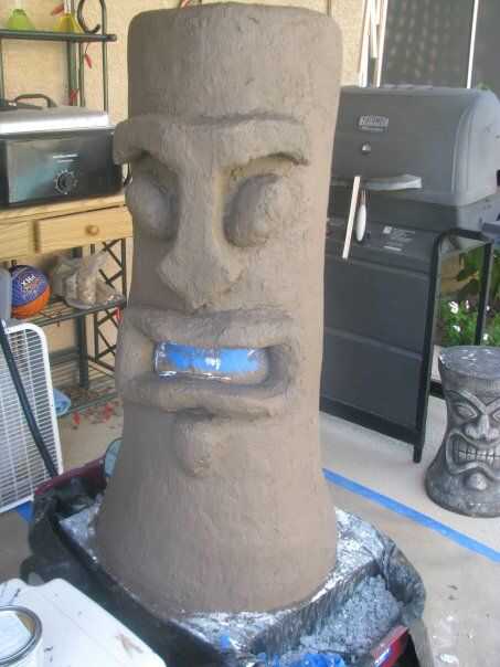 2) la segunda capa de pintura va a ser el más ligero de sus dos colores de marrón. Simplemente pintar el tiki todo, incluyendo el cable que viene por la parte trasera Si lo desea.
