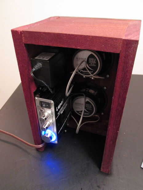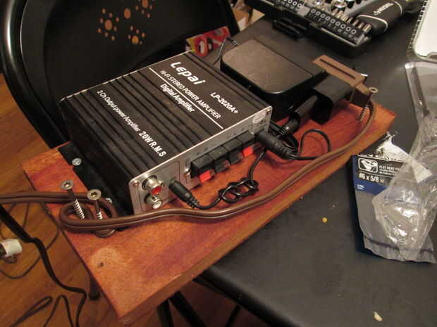 Por último, montar todo junto, y si has entra todo correctamente, podrá conectar los cables de altavoz muy bien. (si la polaridad se especifica, para cada altavoz, "+ a +" y "- -". Si no se especifica, solo conectar las salidas derecha amplificador a un altavoz y las salidas izquierda amp al otro)