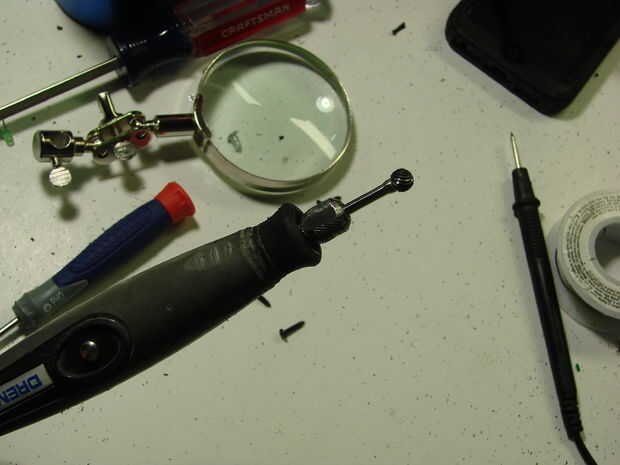 • Herramienta rotatoria Dremel con una fresa de metal pequeña para quitar el plástico desde el borde interior de la caja del altavoz.