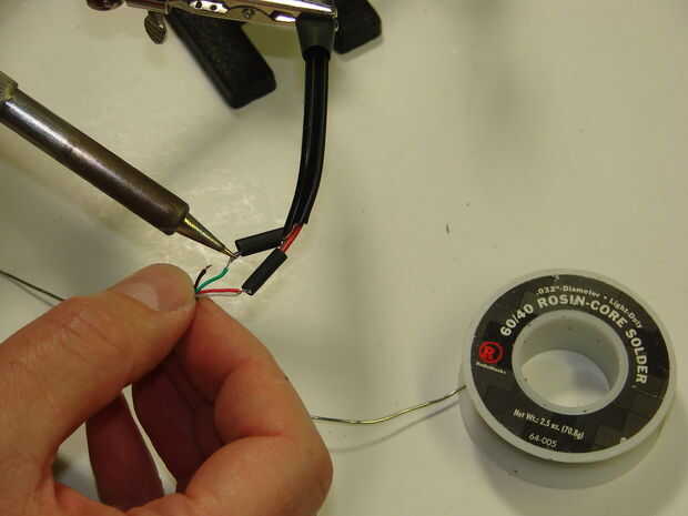 Antes de soldar, corte termo retráctil para aislar las conexiones después de soldar. Dar fuerza general, un heatshrinked un par de piezas sobre el área entera de la conexión del cable.