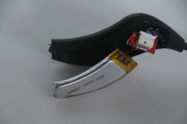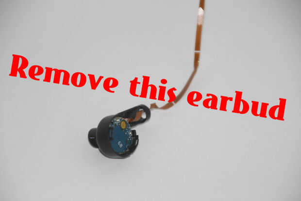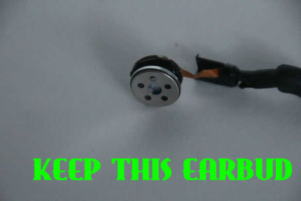 1. Se dará cuenta de que sólo uno está conectado al componente bluetooth, el otro está conectado a la primera almohadilla. Retire el auricular sin el Bluetooth, probablemente este será el uno sin "botones" o los controles en él.