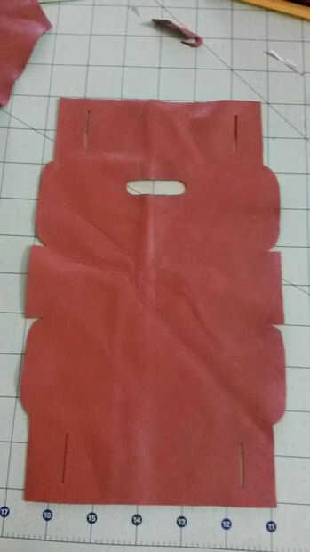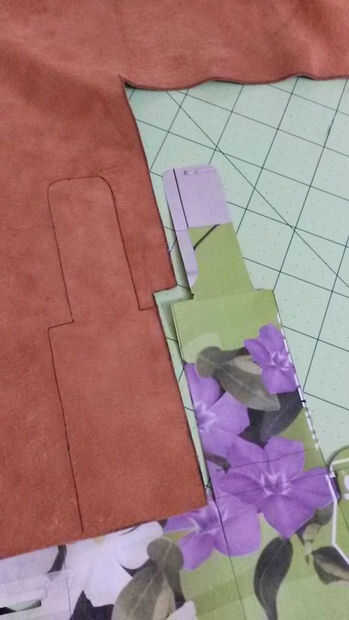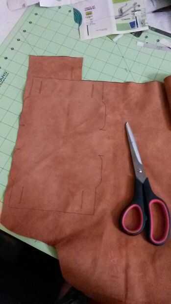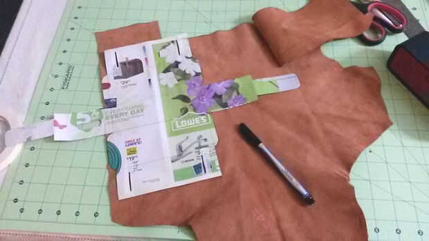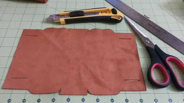 Pone su patrón en la parte posterior del cuero, lo traza y recortarlo. Para cantos rectos generalmente uso una regla y el cúter y corte los bordes redondos con unas tijeras.
