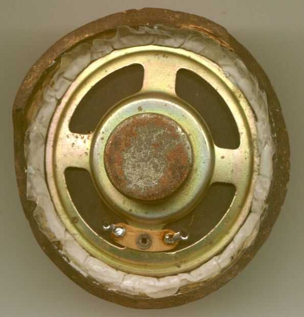 Usé un relleno de epoxy de dos componentes para sellar los huecos alrededor de los altavoces. Puesto que la cáscara no es perfectamente redonda, puede escaparse aire alrededor de los lados del altavoz y esto conducirá a una pérdida de volumen. Usé una bolsa de plástico para aislar al altavoz del compuesto pegajoso para que el cono no sería ser contaminado.