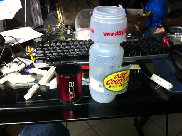 estoy impresionado como muchos otros con la versatilidad, costo y sonida de estos altavoces... (Compré 6 de ellos en el de Sam para total de $120!). Quería algo que podría utilizar mientras voy en bicicleta sin el sonido siendo golpeado. 3D imprimí un par Canz "cajas" que encajarían muy bien en una jaula de la botella de agua (última imagen). Que se asentaron en sonaba mejor y cualquiera puede hacer en 5 minutos. La respuesta de tono y bajo es mejor y su amplificado por acerca de 5 dB. Me encanta montar a caballo con esta configuración y usted no tiene constantemente decir "a la izquierda" a lo largo de vías verdes como gente le oye venir.