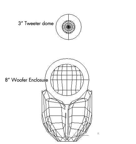 Diseñé la parte del recinto con Autodesk 3DS Max. el diseño es bastante simple el recinto del altavoz de agudos es una forma de bóveda que representa el sol y el woofer de 8" es colocado en el cuerpo, la cabeza del escarabajo. el caso ala agrega el volumen para el bajo. Sin embargo, no ha diseñado el inserto de tubo de ventilación. el inserto de tubo de ventilación se puede cortar y recortar una vez dentro se enlaza con el mezclador de resina. las alas son dibujadas en illustrator la escala es 1:1. así que azulejo imprimir en tamaño carta y pegar un pedazo entero grande.