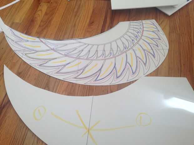 Corte el contorno exterior de la mayoría y este rastro de tiempo el contorno exterior 2 º a un tablero de la espuma. y utilice un cuchillo x acto para cortarlo. luego cortar 2 º contorno y rastro de contorno 3. es la punta. se cubrirá la mayor parte de una capa por la capa superior de corte así que uno más pequeño dentro de una pieza más grande. sólo asegúrese de que puede cubrir desde el exterior.