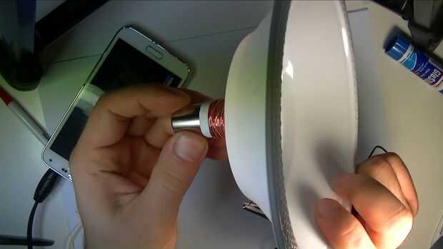 La bobina electromagnética de este altavoz es simultáneamente la membrana que vibra para hacer que el sonido que se puede escuchar. Tejido en un telar circular hecho de una taza de papel, este altavoz definitivamente no es muy eficiente, ni muy fuert
